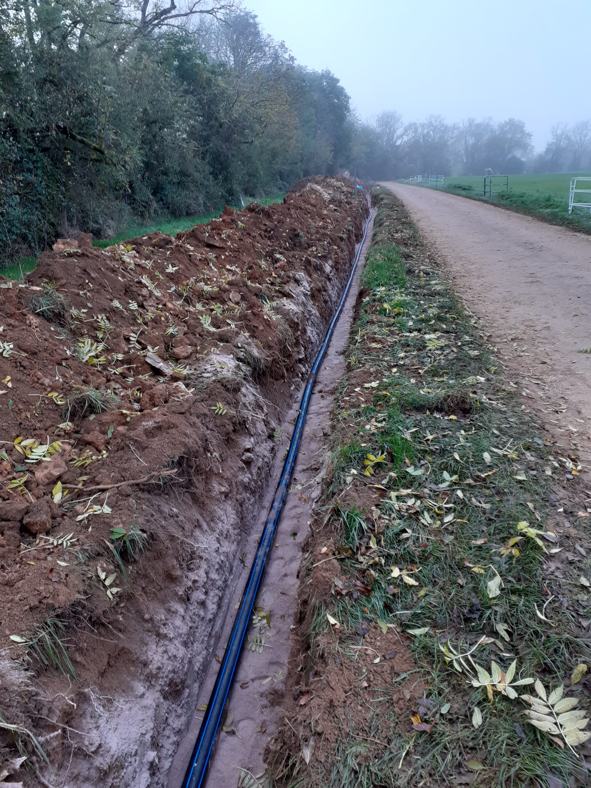Des travaux sont nécessaires et ont pour objectif de mettre en œuvre un nouveau branchement électrique enterré et de profiter de la tranchée pour renouveler le réseau de refoulement ancien de l’eau brute (560 ml).