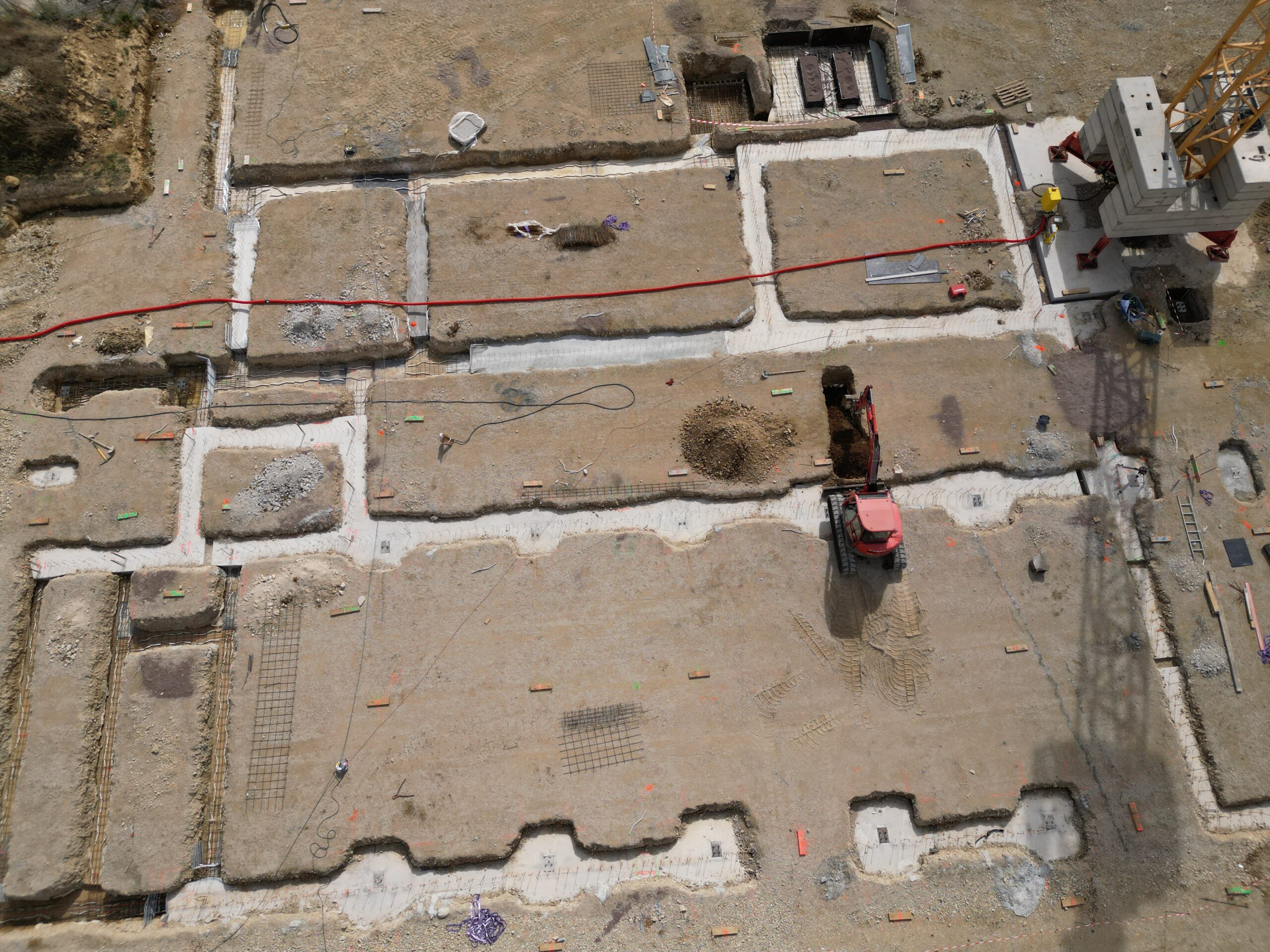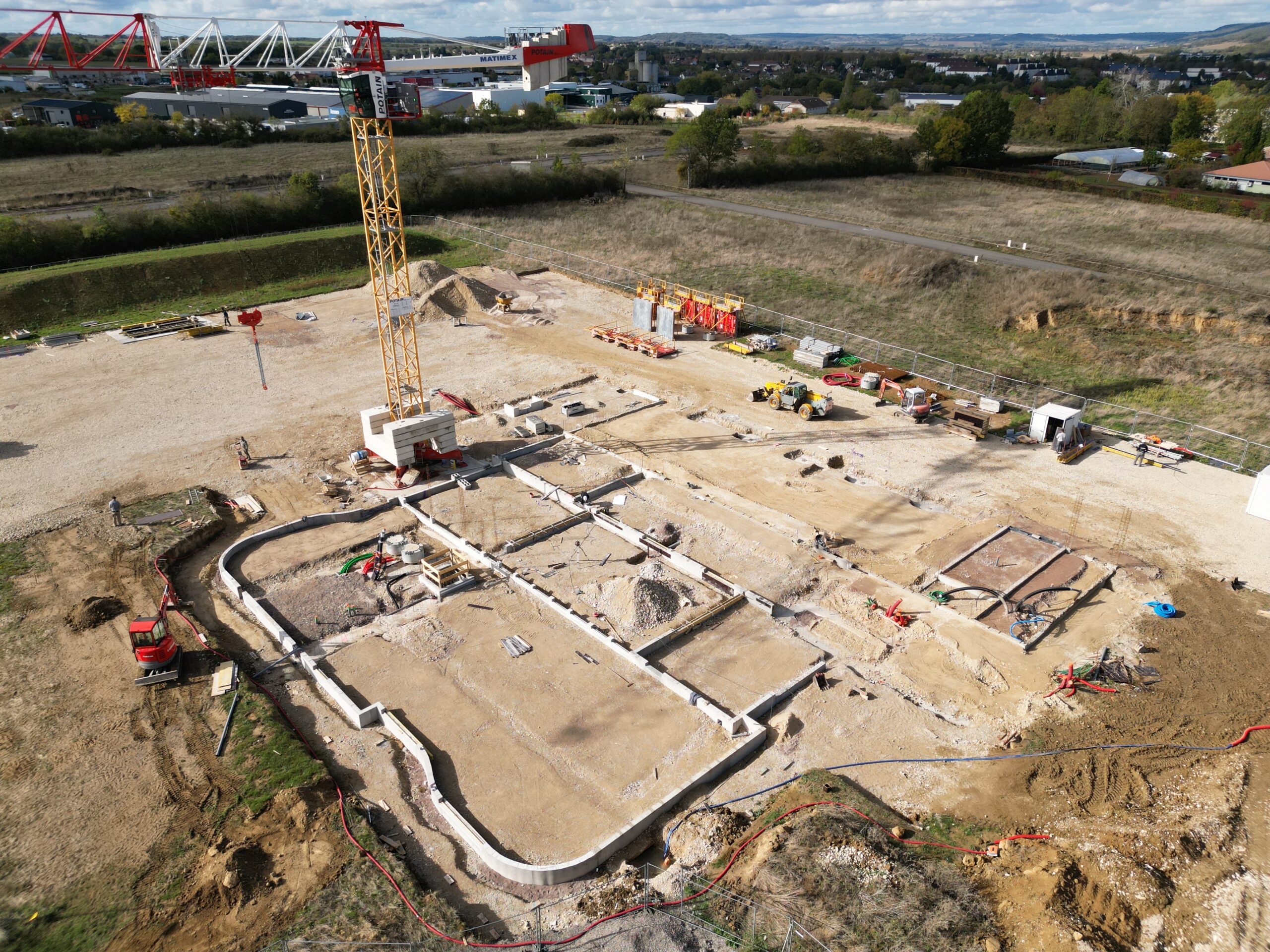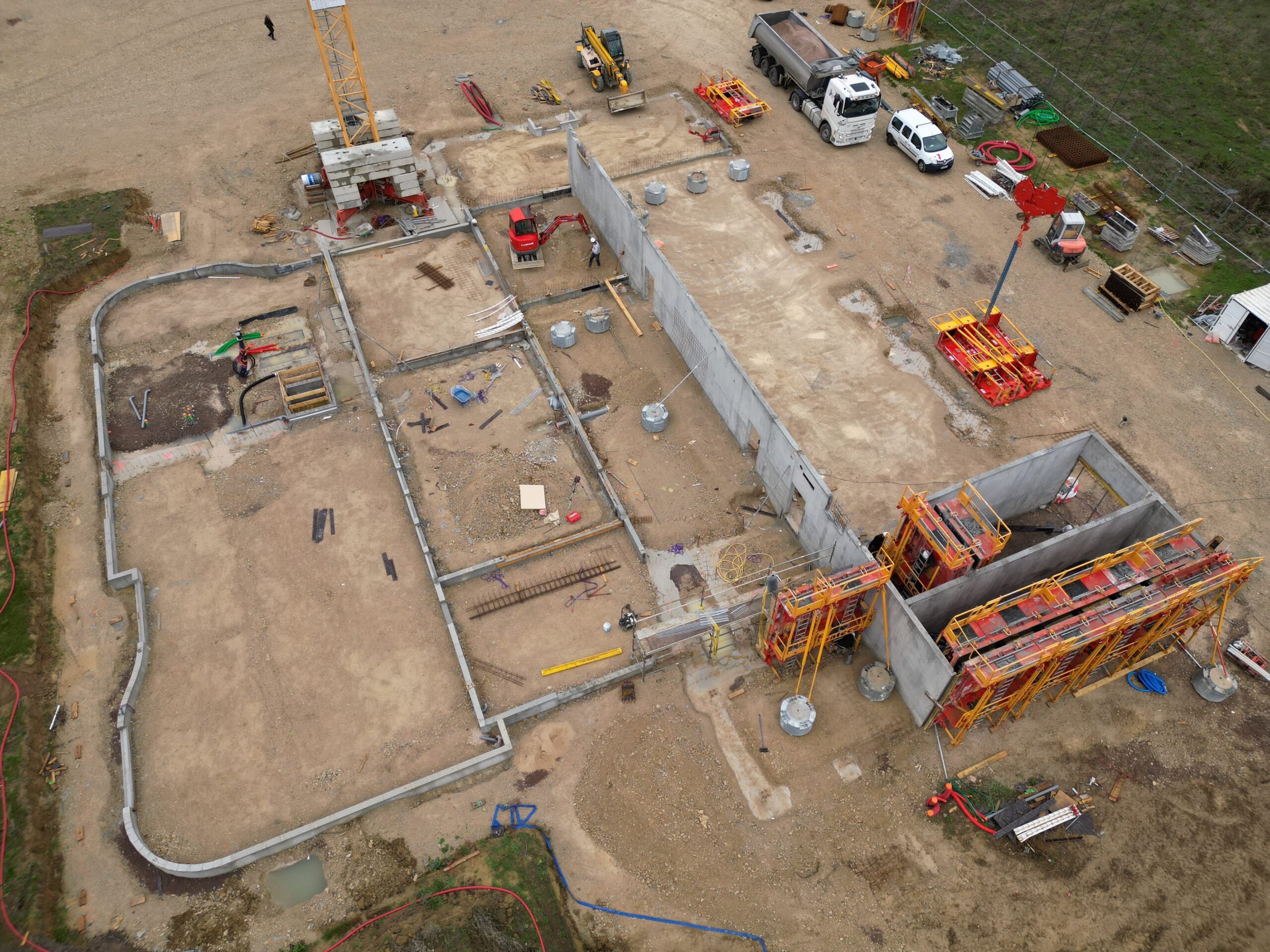 L’entreprise R. Construction, en charge du lot Gros-Œuvre, a terminé les travaux de fondation et de soubassement et débute le montage de quelques murs en béton.