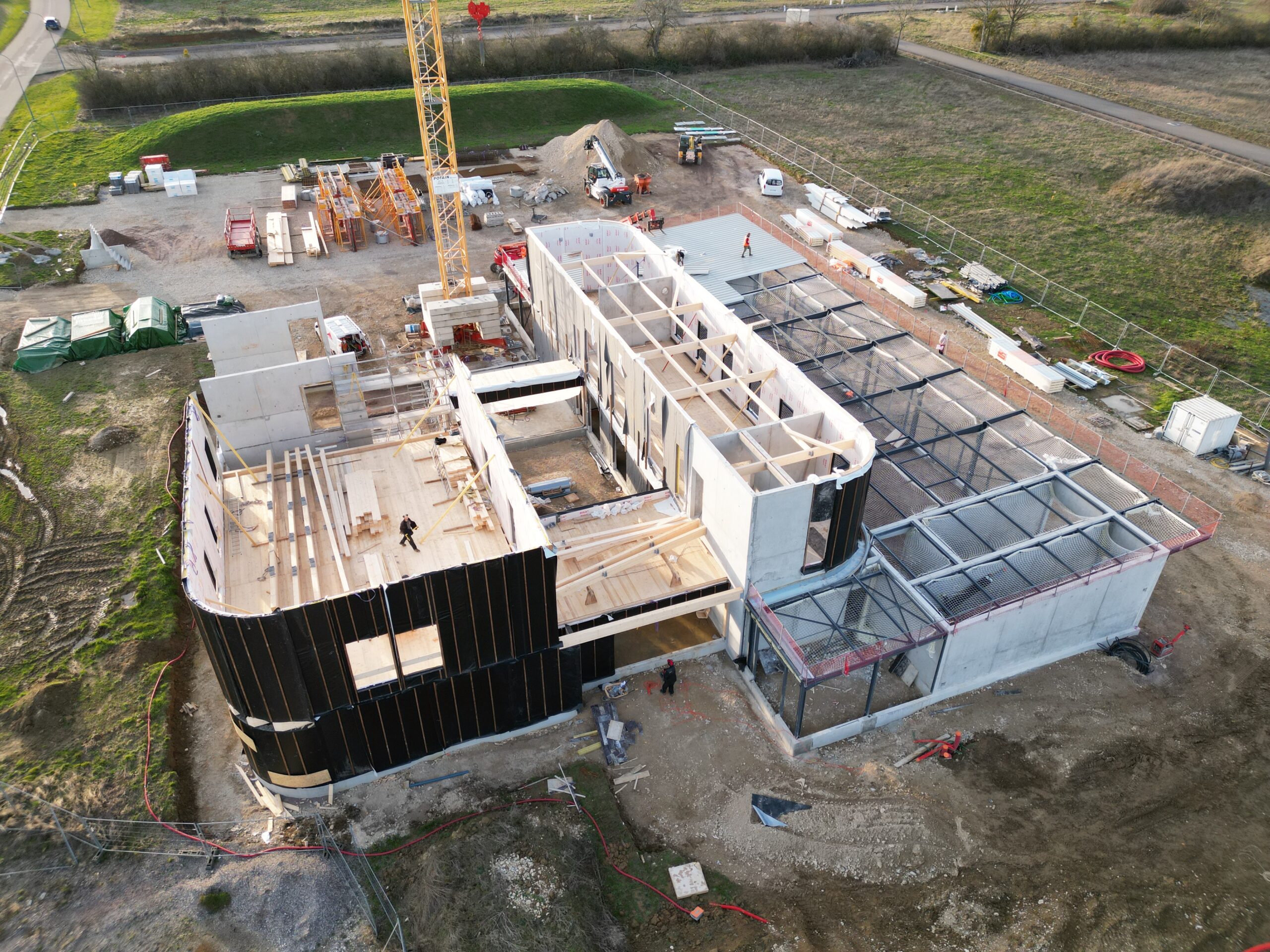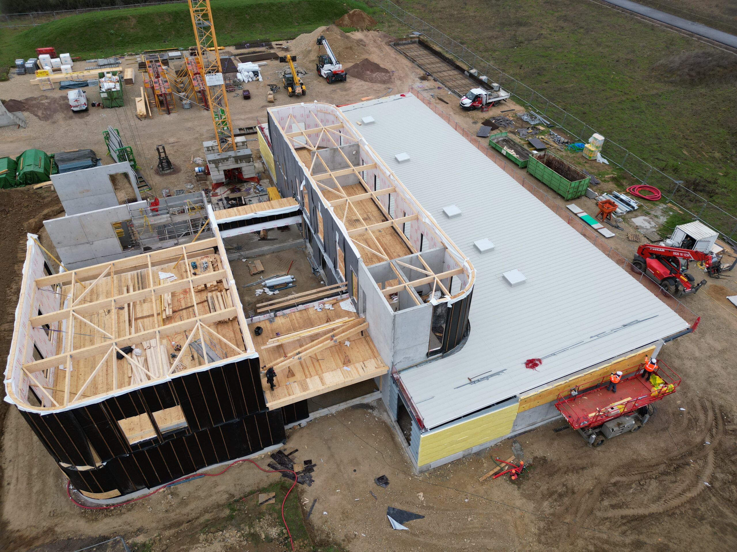 Les travaux ont débuté en juin 2023 pour se terminer en janvier 2025. Les différentes ossatures (bois et métallique) sont maintenant terminées.